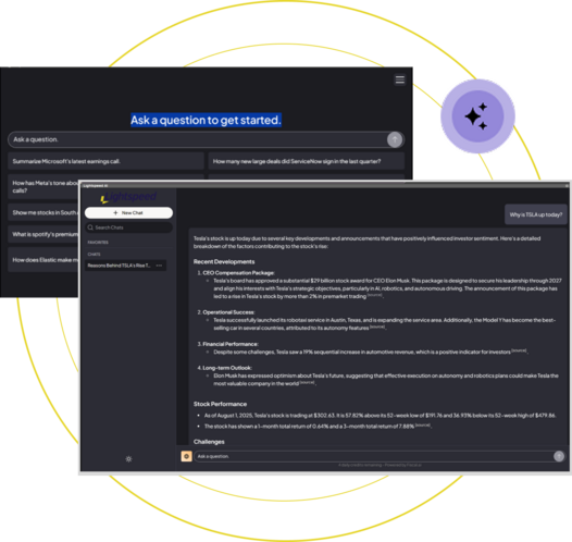 Surfaces market data, fundamentals, and analytics from integrated sources, while supporting strategy exploration through predefined prompts, risk views, and market context.